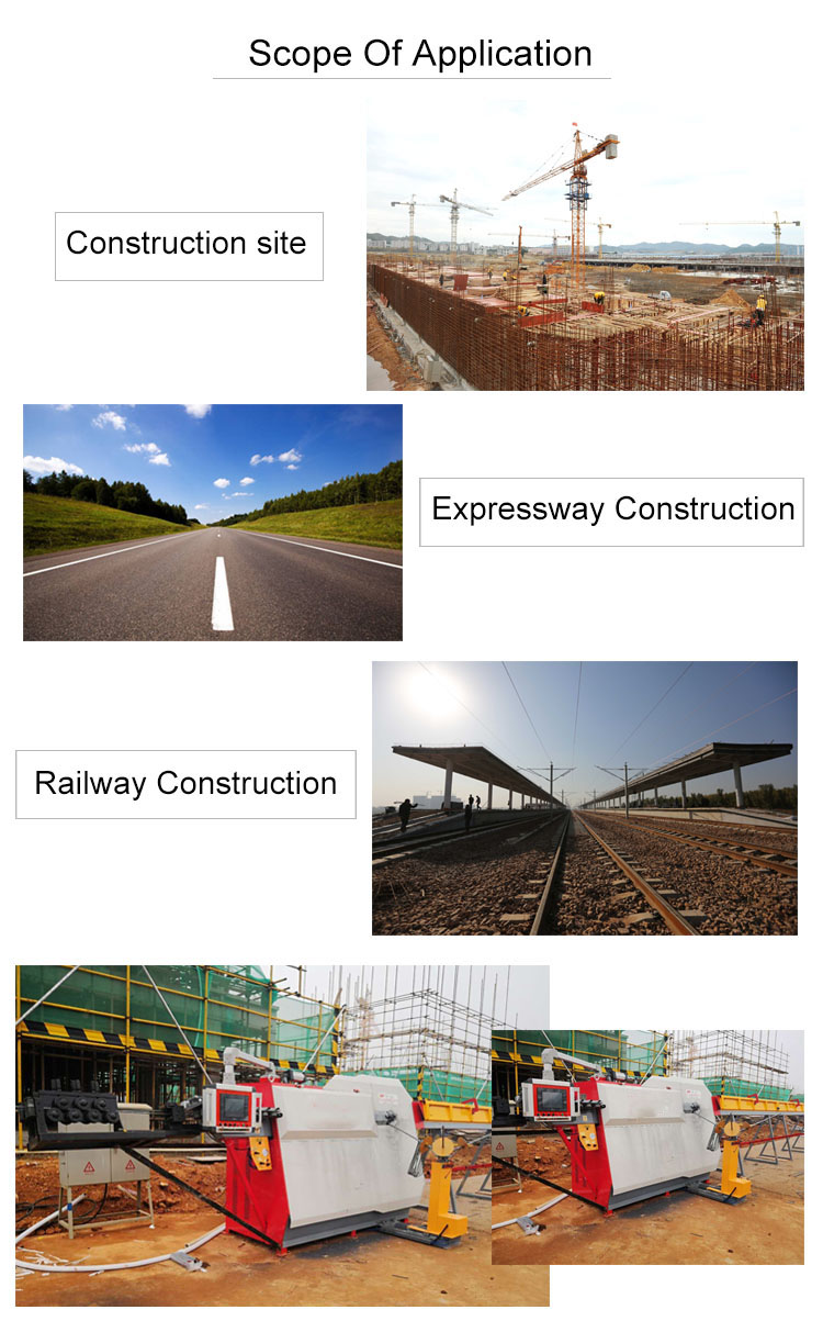 CNC огъване машина от подсилване хранене, отстраняване на котлен камък, изправяне разширяване, огъване формиране, броене, прекъсване на различни процеси интеграция, може директно да произвеждат различни размери и размери на стремената, напълно отговарят на проектните изисквания.